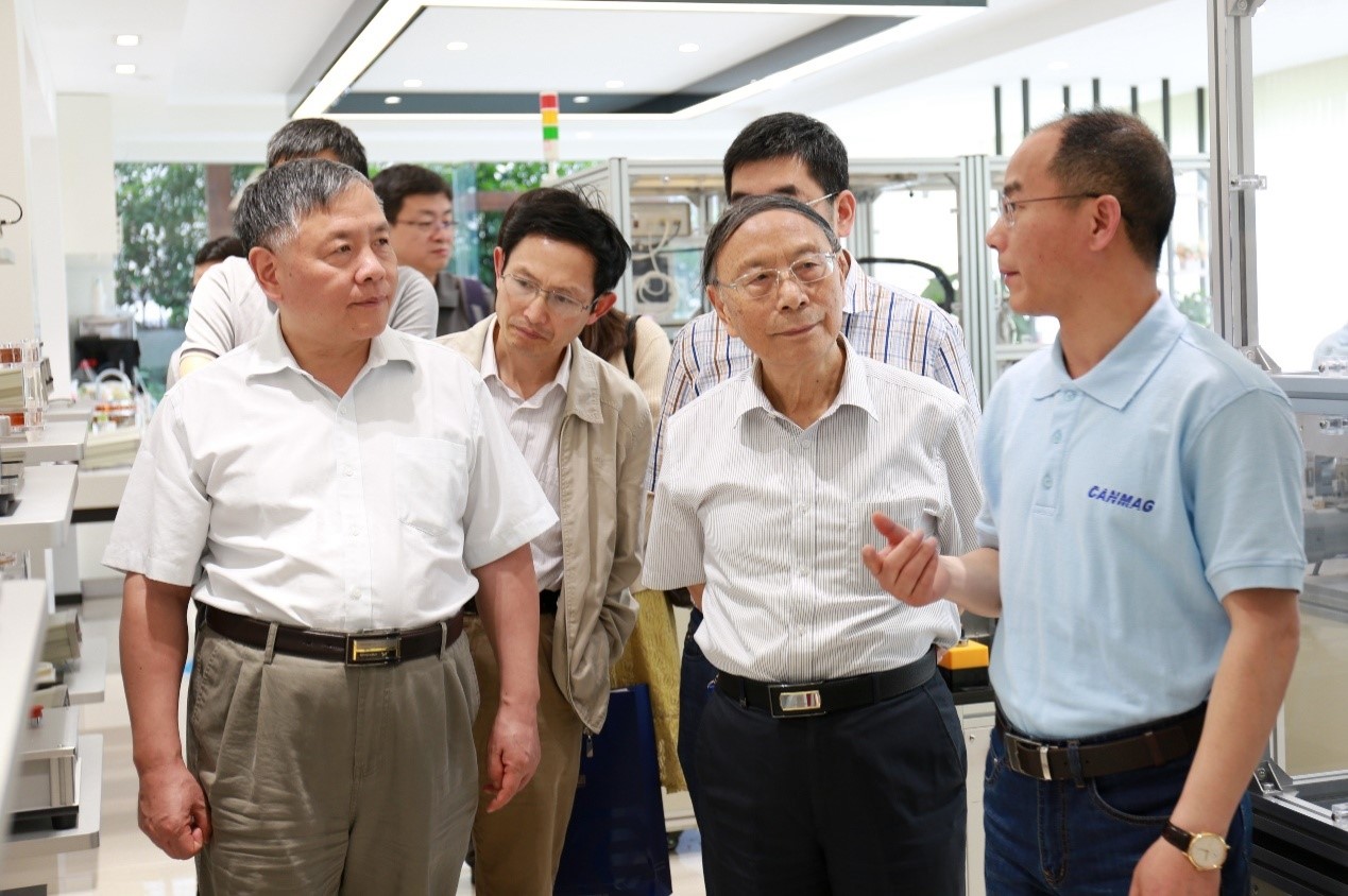 The general manager of Canmag accompanied the academician team to visit the company's exhibition hall. Mr. Huang introduced and demonstrated four major categories of Canmag products, i.e., magnetizing machine, magnetizing coil, magnetic measuring instrument, automatic magnetizing and testing equipment.